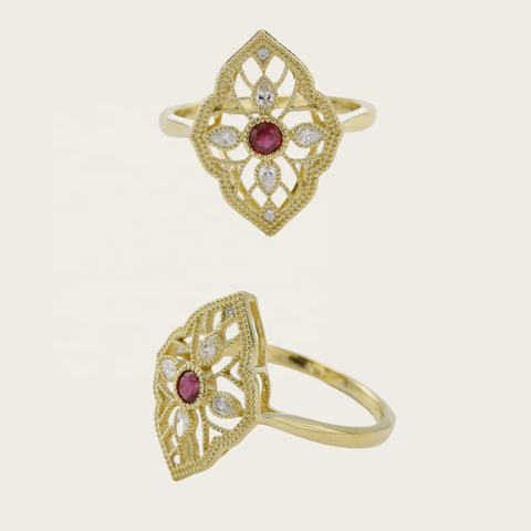 DEYIN New Vintage Style Gemstone Fine Jewelry Set 18k Pure Gold Real Natural Diamond Ruby Rings for Women